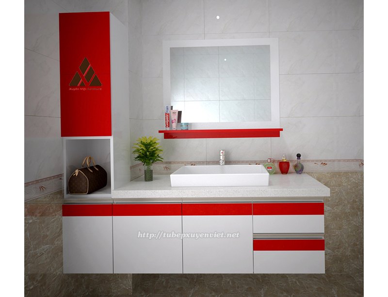 Tủ lavabo nhựa XVL547 được sản xuất theo thiết kế kích thước đặt hàng. Tủ được chia là 2 ngăn kéo , 3 cánh mở, cạnh gương có tủ đồ nhỏ tiện dụng.