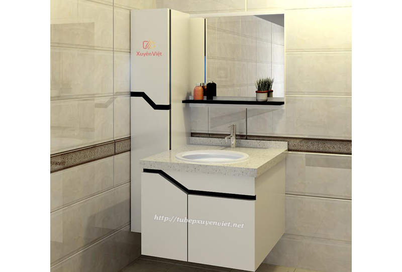 Tủ lavabo nhựa sơn men bóng ôtô màu trắng và đá nhân tạo thạch anh trắng, có tủ đồ cho bé Quang - XV521M