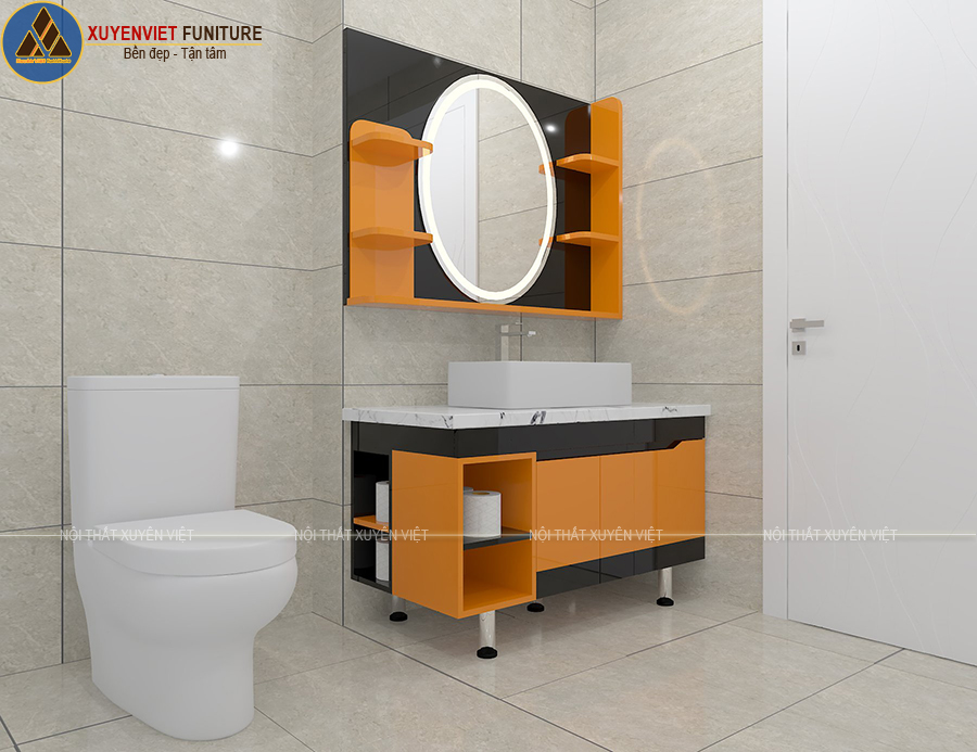 Tủ lavabo nhựa sơn men bóng tone cam-đen nổi bật XVL844